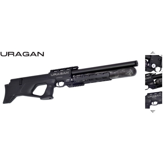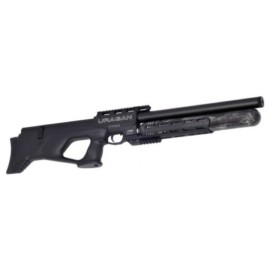 The Uragan boasts a premium choked and shrouded barrel, delivering exceptional accuracy and a muzzle velocity of 300 m/s (36 Joules of power). Its tactical black synthetic stock comes with an ambidextrous pistol grip, an adjustable rubber butt plate, and a biathlon-style side lever that can be easily switched from right to left!