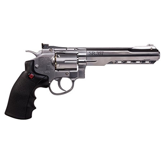 Experience the look, function, and feel of a true classic with the Crosman CRVL357S (also known as the SR357). This highly authentic CO2-powered revolver features a heavy-weight, full-metal frame that provides unparalleled realism in the hand.
